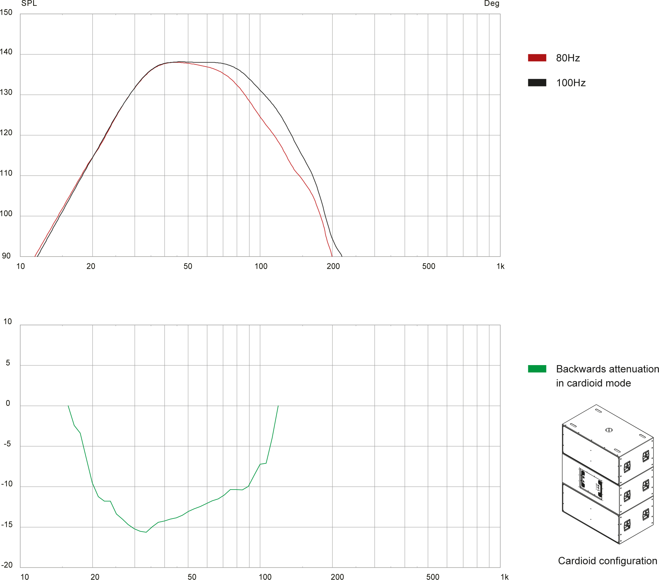 Der integrierte DSP mit 96 kHz Samplingrate bietet präzise Signalverarbeitung sowie praxisnahe Presets (z. B. 80 Hz, 100 Hz und Cardioid), wodurch sich das System optimal an verschiedene Setups und akustische Anforderungen anpassen lässt. Besonders hervorzuheben ist die Möglichkeit zur kardioiden Subwoofer-Konfiguration, die eine gezielte Basslenkung und reduzierte Rückwärtsabstrahlung ermöglicht.