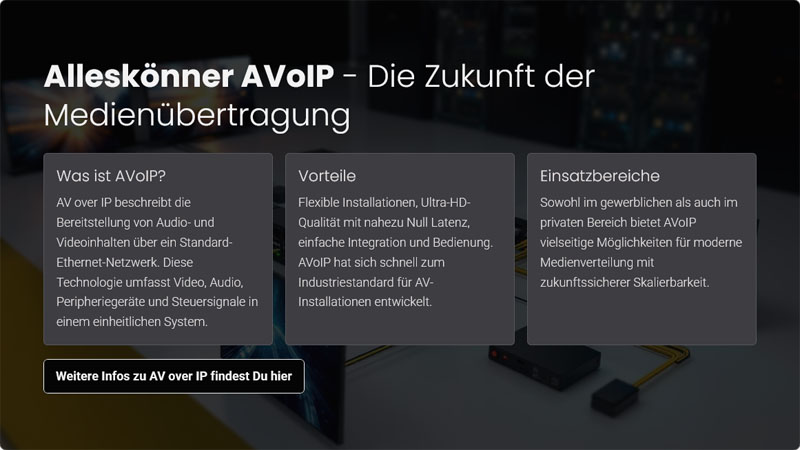 Zuverlässige, sichere Verteilung von medizinischen Informations- & Multimedia-Inhalten in Klinik-Umgebungen — z. B. Patienten-Informationsanzeigen, OP/Endoskopie-Livefeeds, Überwachungs-/Kamera-Streams, Digital Signage in Wartebereichen, zentrale Benachrichtigungen (Paging/Alarm) und Hintergrund-Audio.