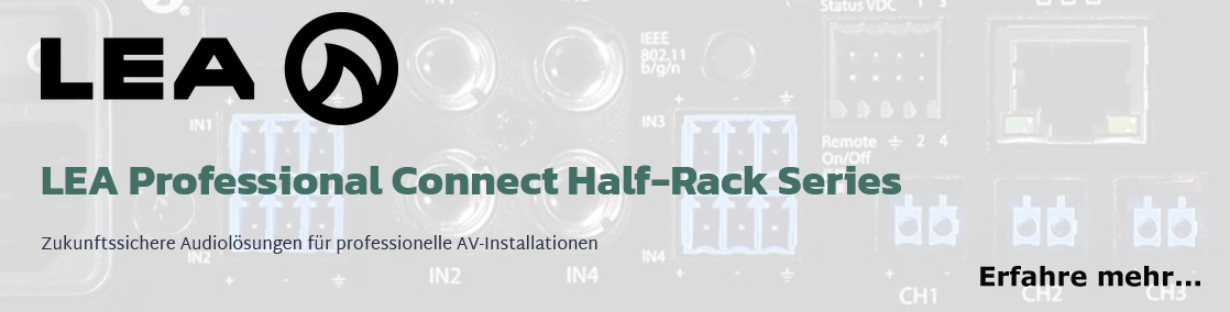 Bei der LEA Half-Rack-Serie handelt es sich um kompakte 4-Kanal Leistungsendstufen mit integriertem Eingangsmischer und einer Vielzahl extrem praktischer Features, die aktuell im AV-Markt ihres Gleichen suchen.