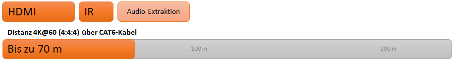 - Übertragungsreichweite: Bis zu 70 m über ein CAT5e/CAT6‑Kabel bei 4K (60 Hz 4:4:4) und Full‑HD