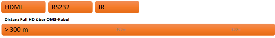 - 1080P Video kann bis zu 305 m verlängert werden, abhängig vom verwendeten Faser-Typ.