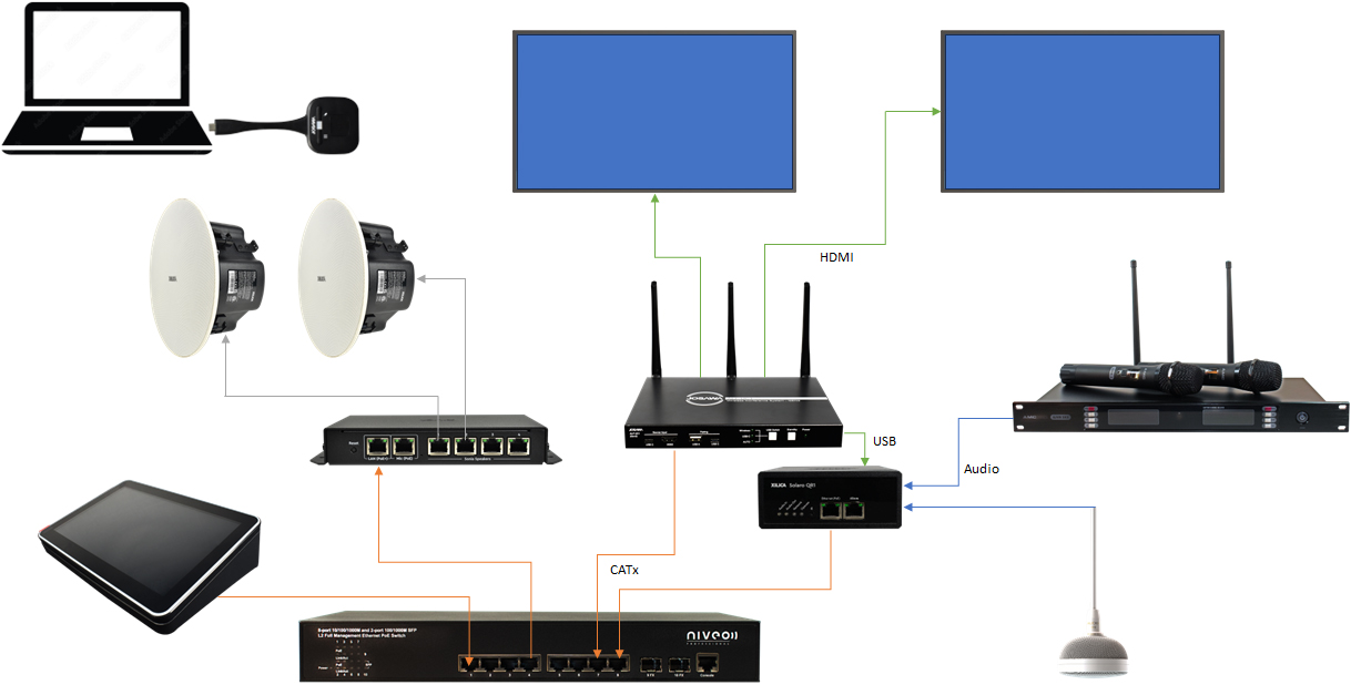 Der Xilica Solaro QR1‑UC ist ein leistungsstarker, modular aufgebauter Digital Signal Processor (DSP) für Anwendungen in Unified Communications, Konferenzräumen, Schulungsräumen oder anderen kollaborativen Umgebungen, in denen Audio‑Qualität, Flexibilität und Zuverlässigkeit gefragt sind. Trotz seiner kompakten Bauform bietet er eine nahezu voll ausgestattete DSP-Plattform: Vier‑mal‑vier Dante‑Audio-Netzwerk, zwei Eingangs-/Ausgangs‑USB‑Kanäle, acht frei bestückbare I/O‑Kartensteckplätze sowie die vorinstallierte HearClear™ Acoustic Echo Cancellation (AEC). Die Versorgung erfolgt über Power over Ethernet (PoE, IEEE 802.3af, Klasse 0), wodurch separate Netzteile entfallen und die Installation stark vereinfacht wird.