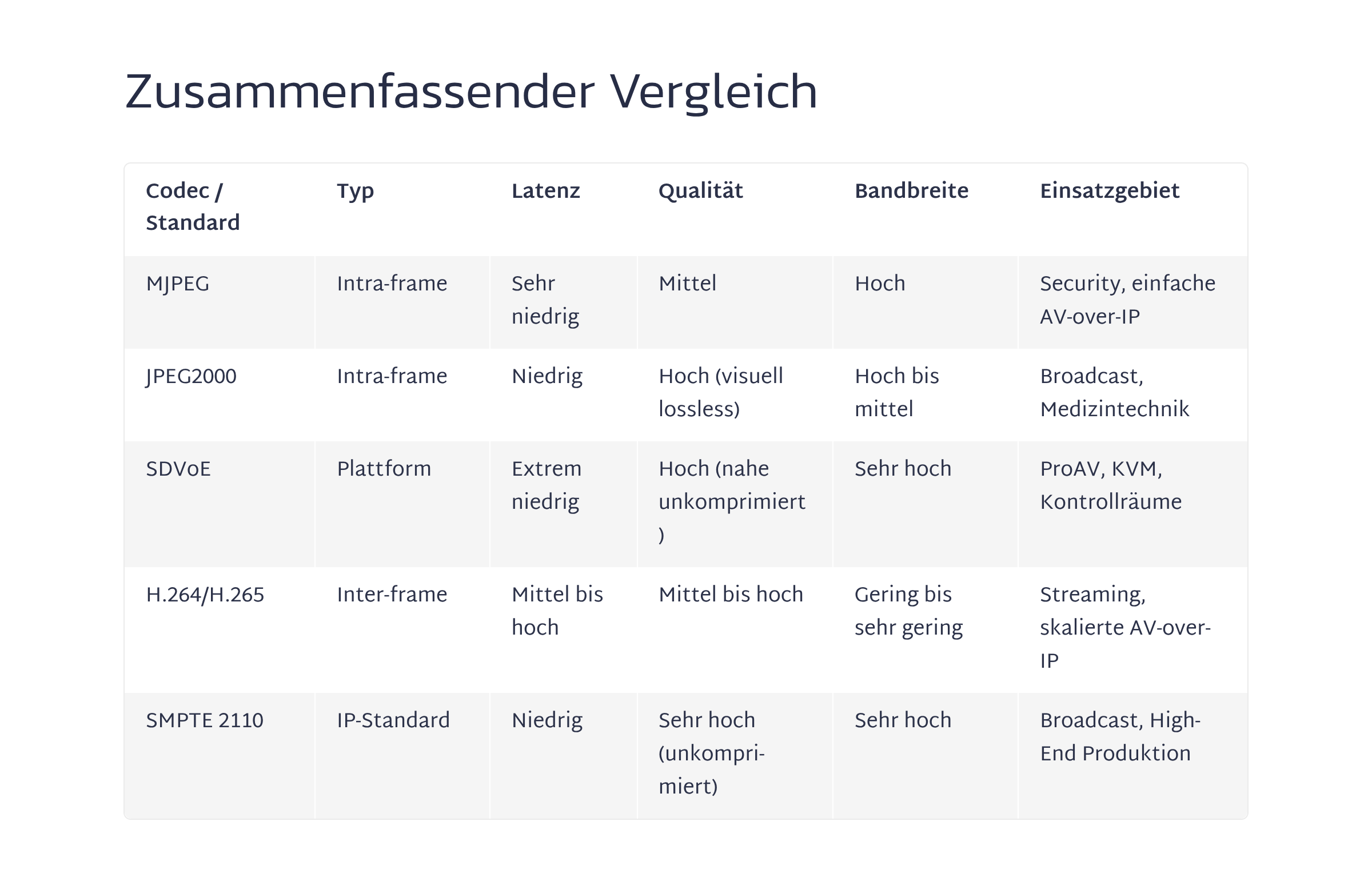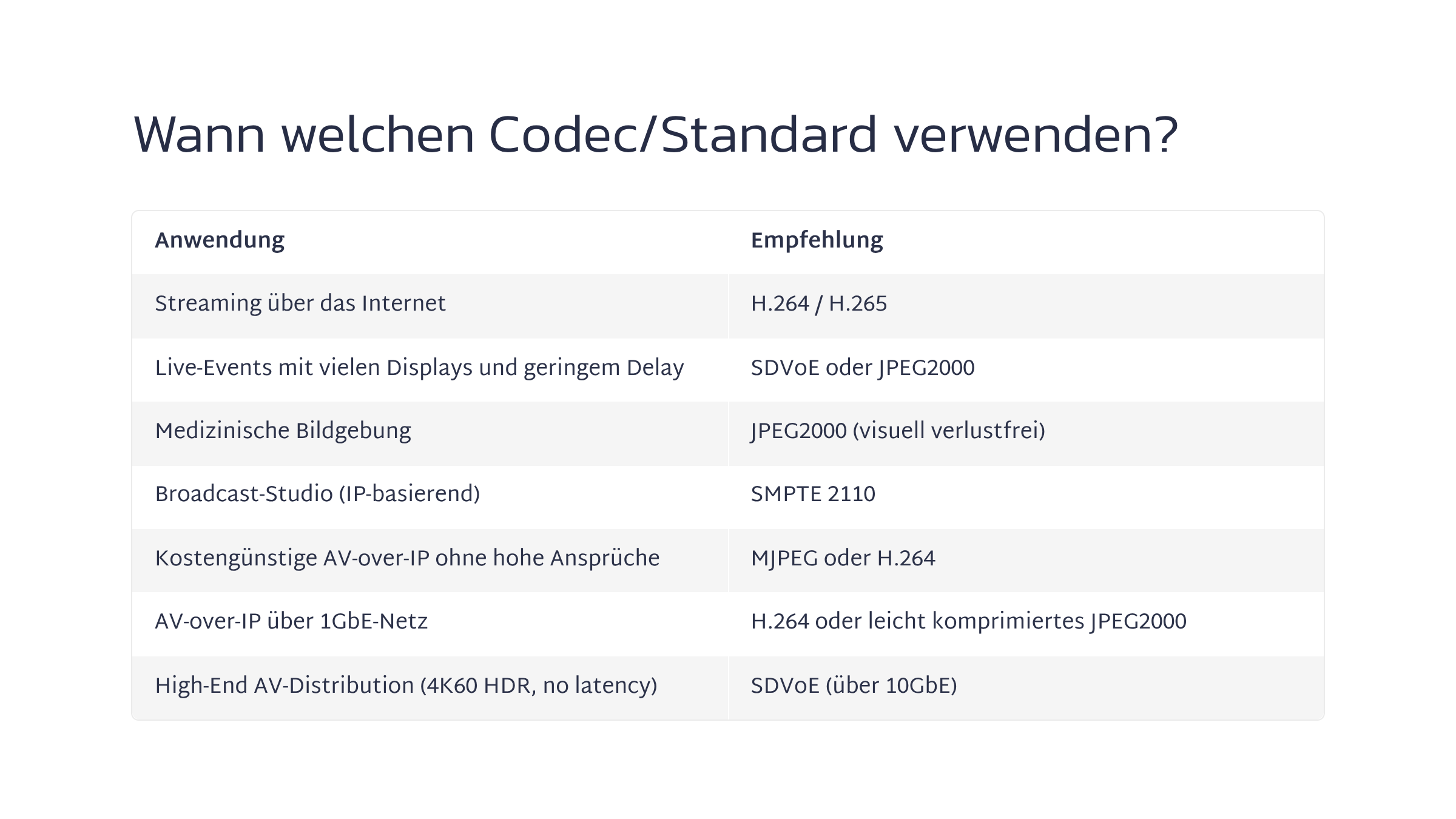 Unterschiede zwischen AVoIP-Codecs und den Standards