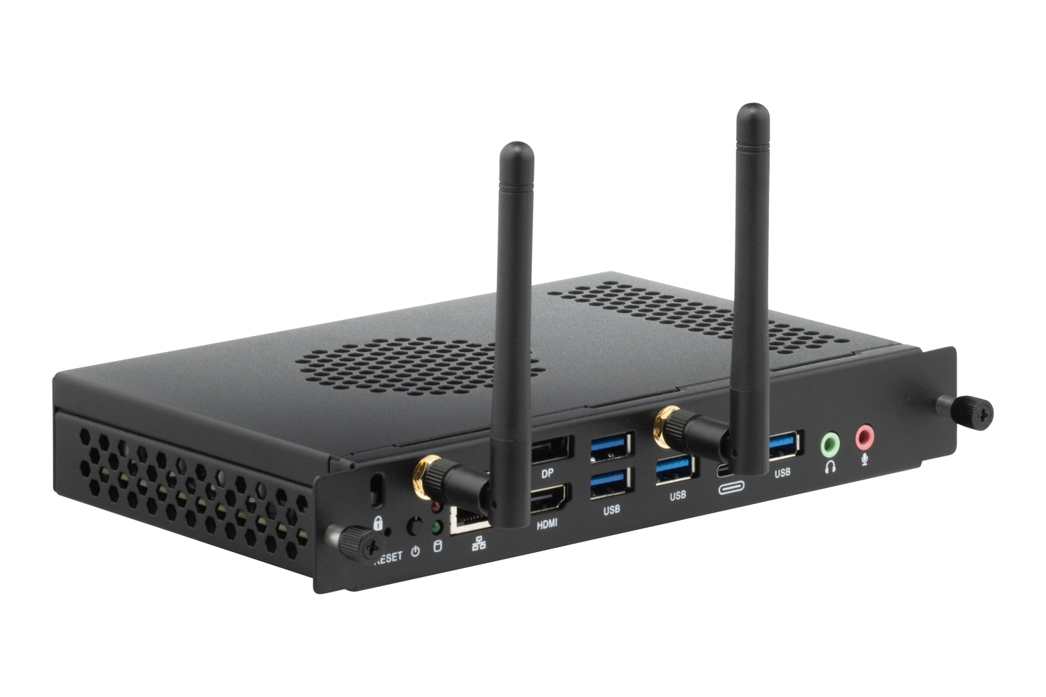 Nutzen Sie die Leistung, um mehr zu erreichen, wenn Sie Ihre interaktiven ViewBoard®-Displays und Präsentationsdisplays mit dem ViewSonic VPC35-W53-G1-Einschub-PC synchronisieren. Mit der außergewöhnlichen Leistung von Intel®-Prozessoren, 16 GB DDR4-Arbeitsspeicher und 256 GB SSD-Speicher wird die Rechenleistung verbessert, sodass Sie komplexe Kurse und Kollaborationen im Handumdrehen bewältigen können. Mit Dual-Band-WLAN, Bluetooth 5.1 und einer Reihe von Anschlüssen, darunter 4K-HDMI, DP1.4, USB 3.0 und Gigabit-LAN RJ45 für schnellere Arbeitsabläufe, genießen Sie pure Produktivität.